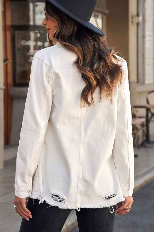 Leopard Print Dropped Shoulder Long Sleeve Denim Jacket